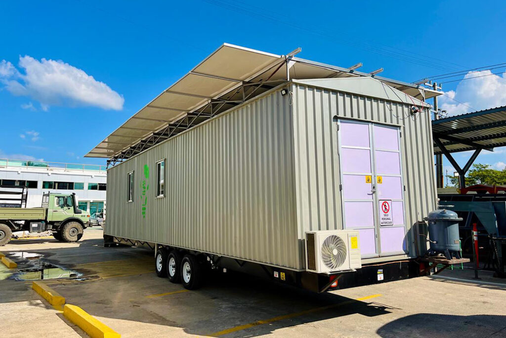 Infraestructura móvil con sistemas de energía sostenible para operaciones en campo.